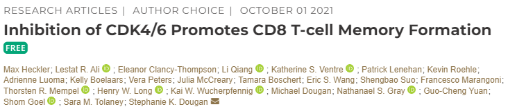 近日,由哈佛大学Dana Farber癌症研究所Stephanie K. Dougan领衔的研究团队,在著名期刊 Cancer discovery 上发表了一项出人意料的研究成果。他们发现: 治疗乳腺癌的CDK4/6抑制剂竟然可以促进记忆性CD8 T细胞的形成。