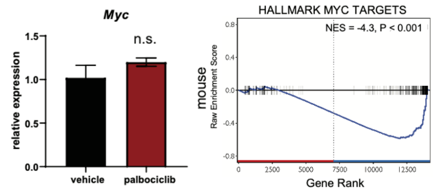 Mxd4属于一个转录因子家族,与Myc的专性异二聚体伴侣Max相关。Mxd4与Max的结合使Max远离Myc,并抑制Myc靶基因的转录。Dougan教授团队观察到:在CDK4/6抑制剂存在下,激活的CD8T细胞中Myc靶基因表达明显下调,尽管Myc转录水平保持不变。