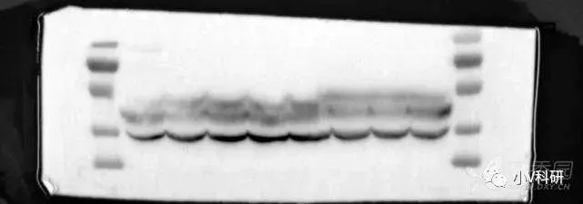一般来说笑脸问题首先考虑电泳环节,多半是凝胶没凝固好。但上图 marker 却异常整齐,笑脸条带整齐地手拉手,这就不是凝胶问题导致的。